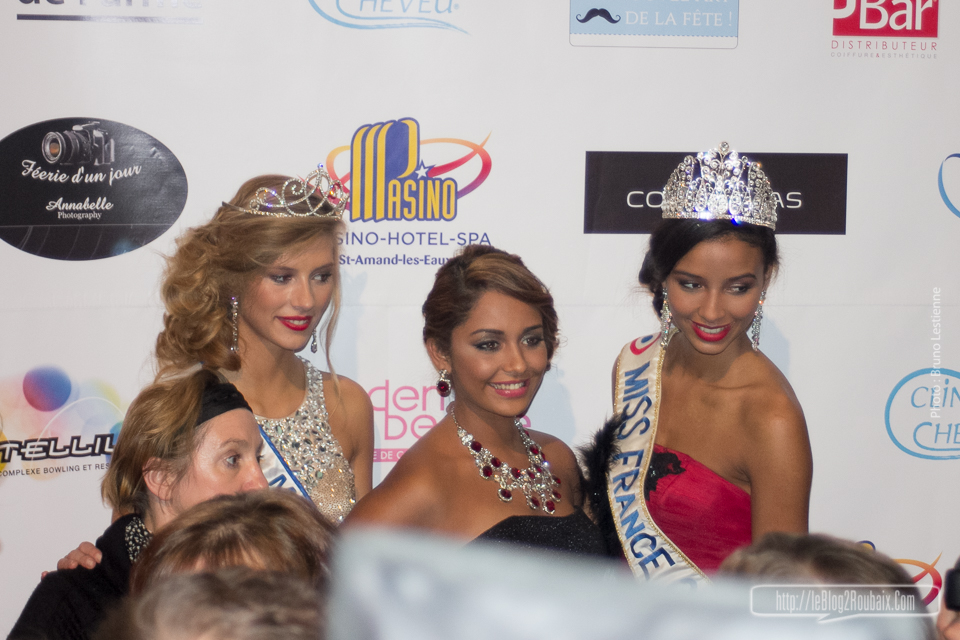 Khaoula Najine, Miss Roubaix Métropole 2013, entourée de Camille Cerf, tout juste élue Miss Nord Pas de Calais, et Flora Coquerel, Miss France 2014, au Pasino de St Amand.