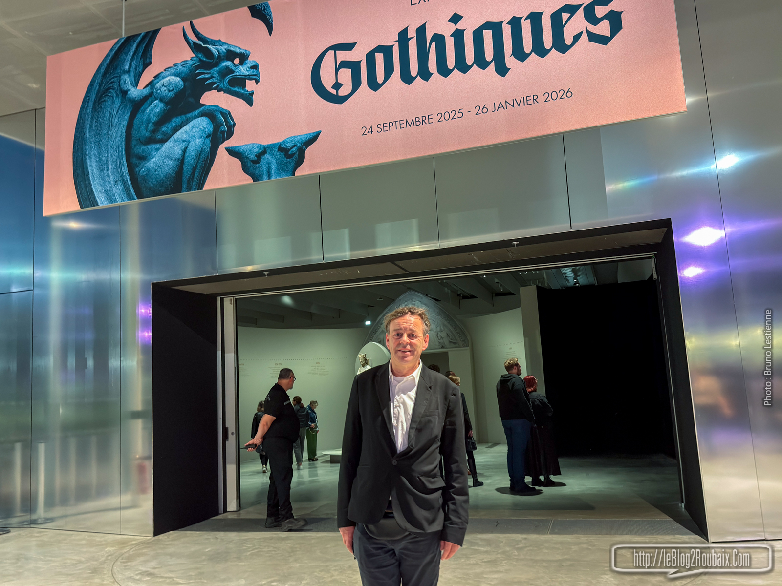 Et en fait, Wim Delvoye était présent à Lens. Je suis allé lui parler en lui disant qu’on venait de féter les 15 ans du Discobolos à Roubaix. Il était au courant. Lui ai montré une photo du groupe autour de l’oeuvre roubaisienne, ce qui l’a vraiment intéressé. Il a zoomé sur la photo, s’est arrêté sur les miss présentes, et m’a dit qu’elles étaient très belles ! Il s’est rappelé de notre 5 juin 2010 : ses propres parents étaient présents aussi ce jour-là ! Plus tard, j’aurais le culot de lui demander de poser devant l’entrée de l’exposition « Gothiques ».